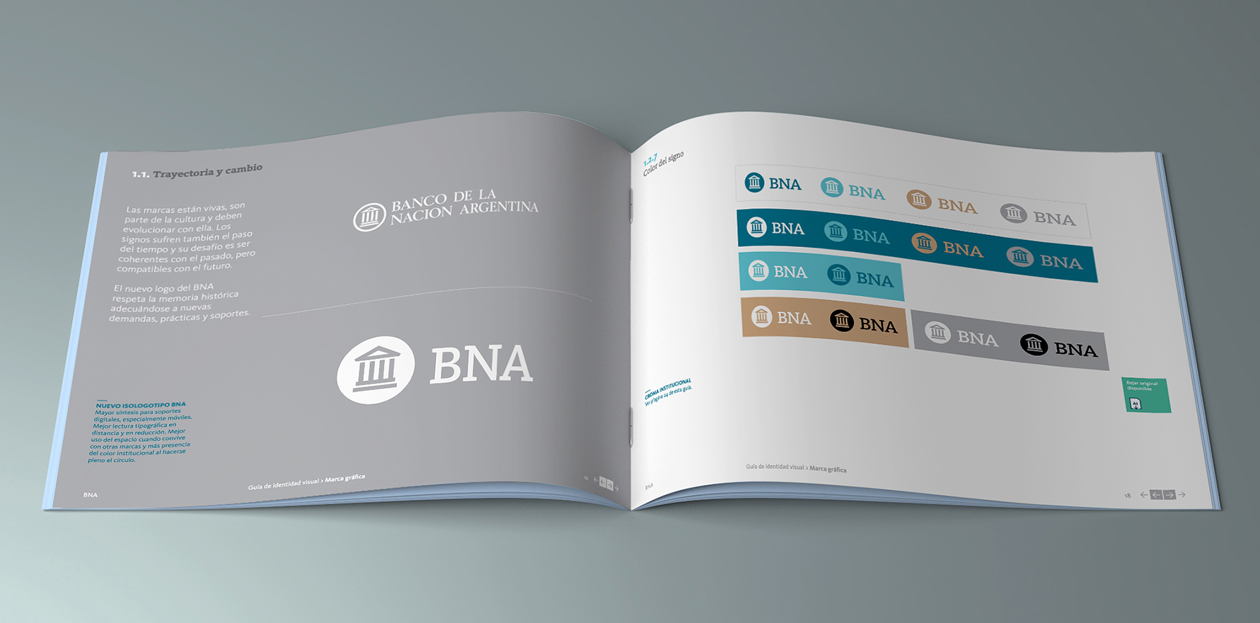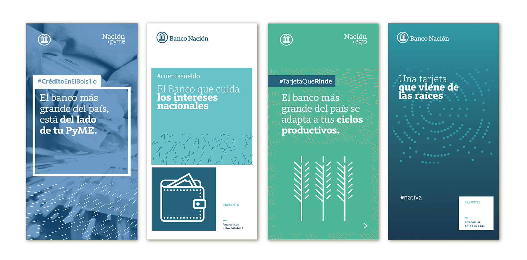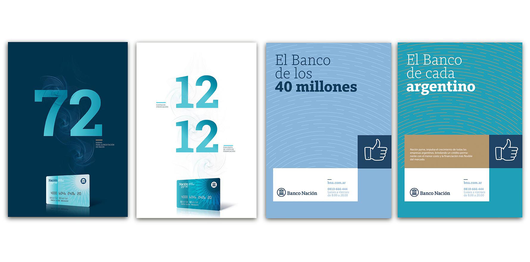 El Banco de la Nación Argentina es el de mayor presencia territorial con una actividad fuertemente condicionada por su función social (pago de jubilaciones, cuentas sueldo públicas, atención de planes sociales, etc.) y al mismo tiempo, compite con la banca privada en el resto de los servicios y productos. En ese marco y junto con transformaciones de sus sistemas informáticos, su calidad de atención, y la ampliación de su red de sucursales, nos pidió desarrollar una actualización de su identidad visual compatible con este nuevo impulso.