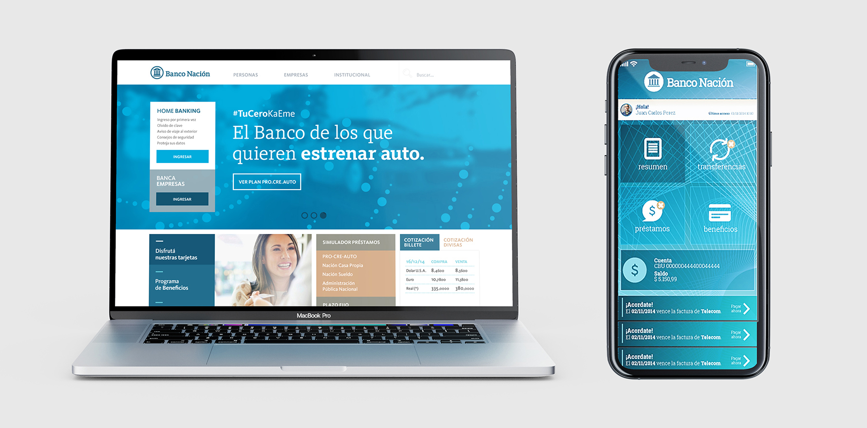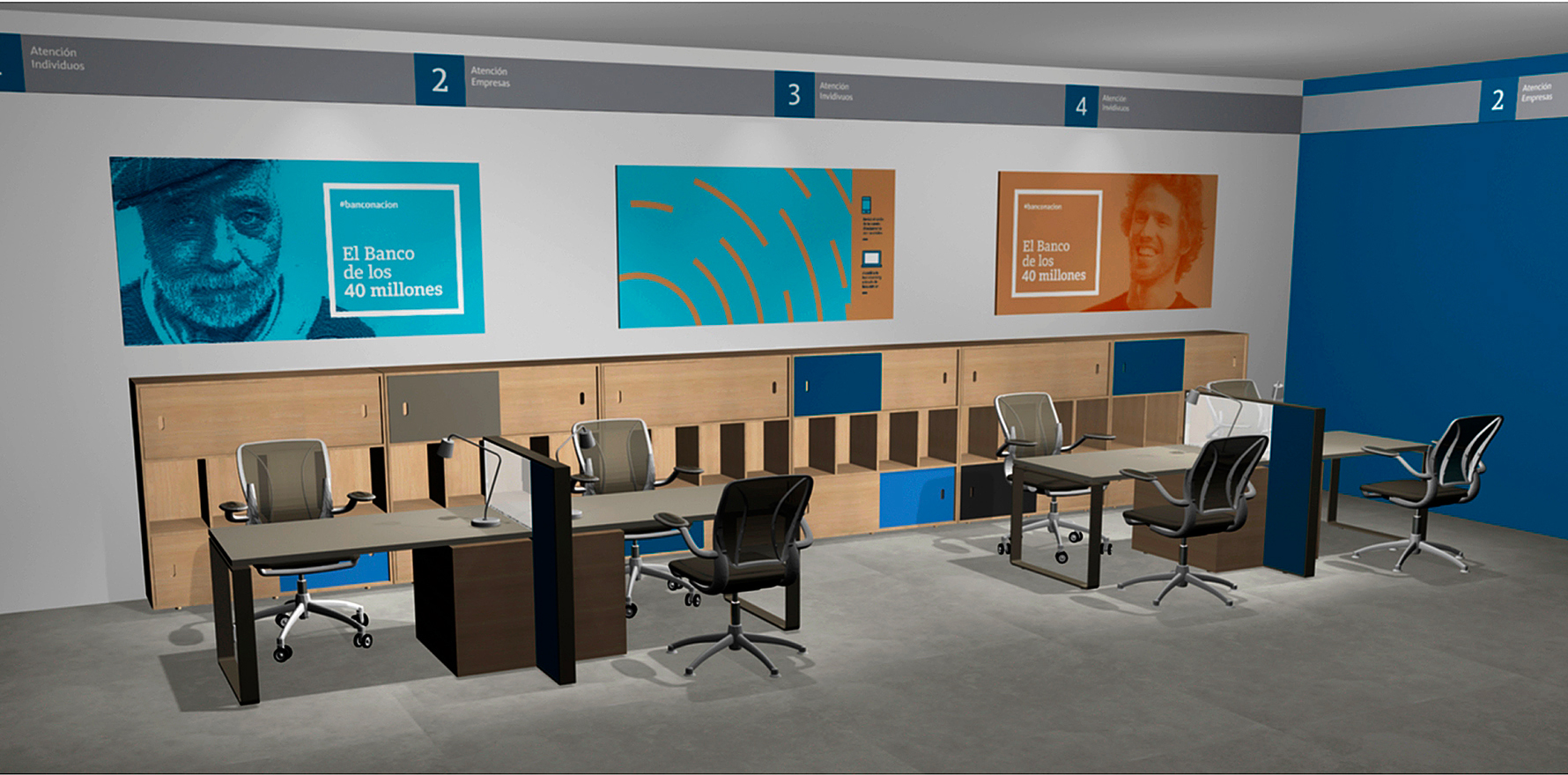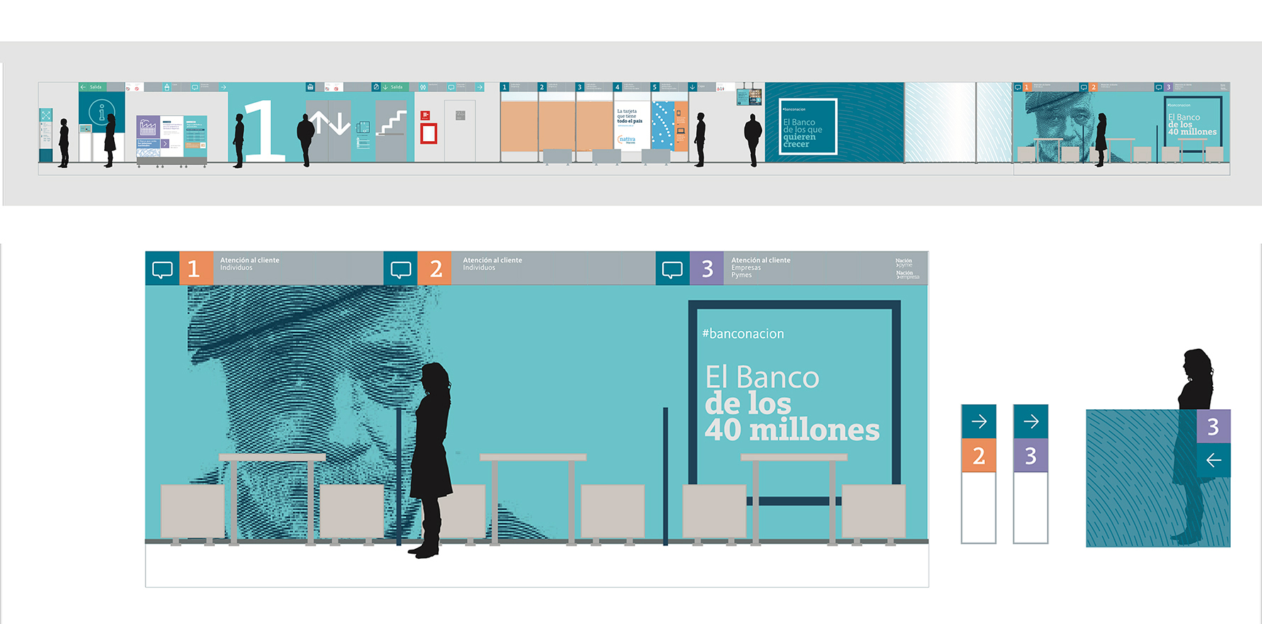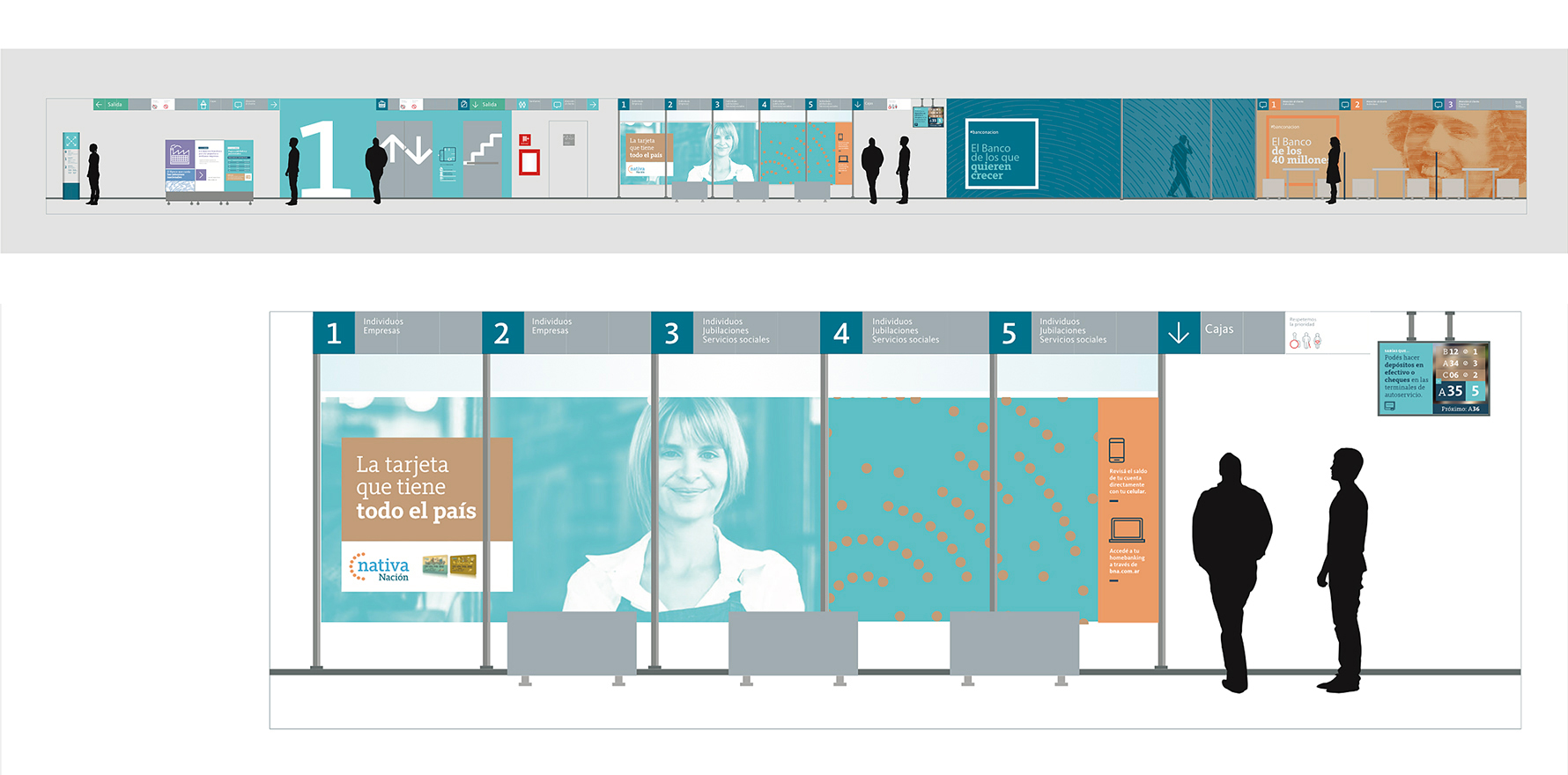 El Banco de la Nación Argentina es el de mayor presencia territorial con una actividad fuertemente condicionada por su función social (pago de jubilaciones, cuentas sueldo públicas, atención de planes sociales, etc.) y al mismo tiempo, compite con la banca privada en el resto de los servicios y productos. En ese marco y junto con transformaciones de sus sistemas informáticos, su calidad de atención, y la ampliación de su red de sucursales, nos pidió desarrollar una actualización de su identidad visual compatible con este nuevo impulso.