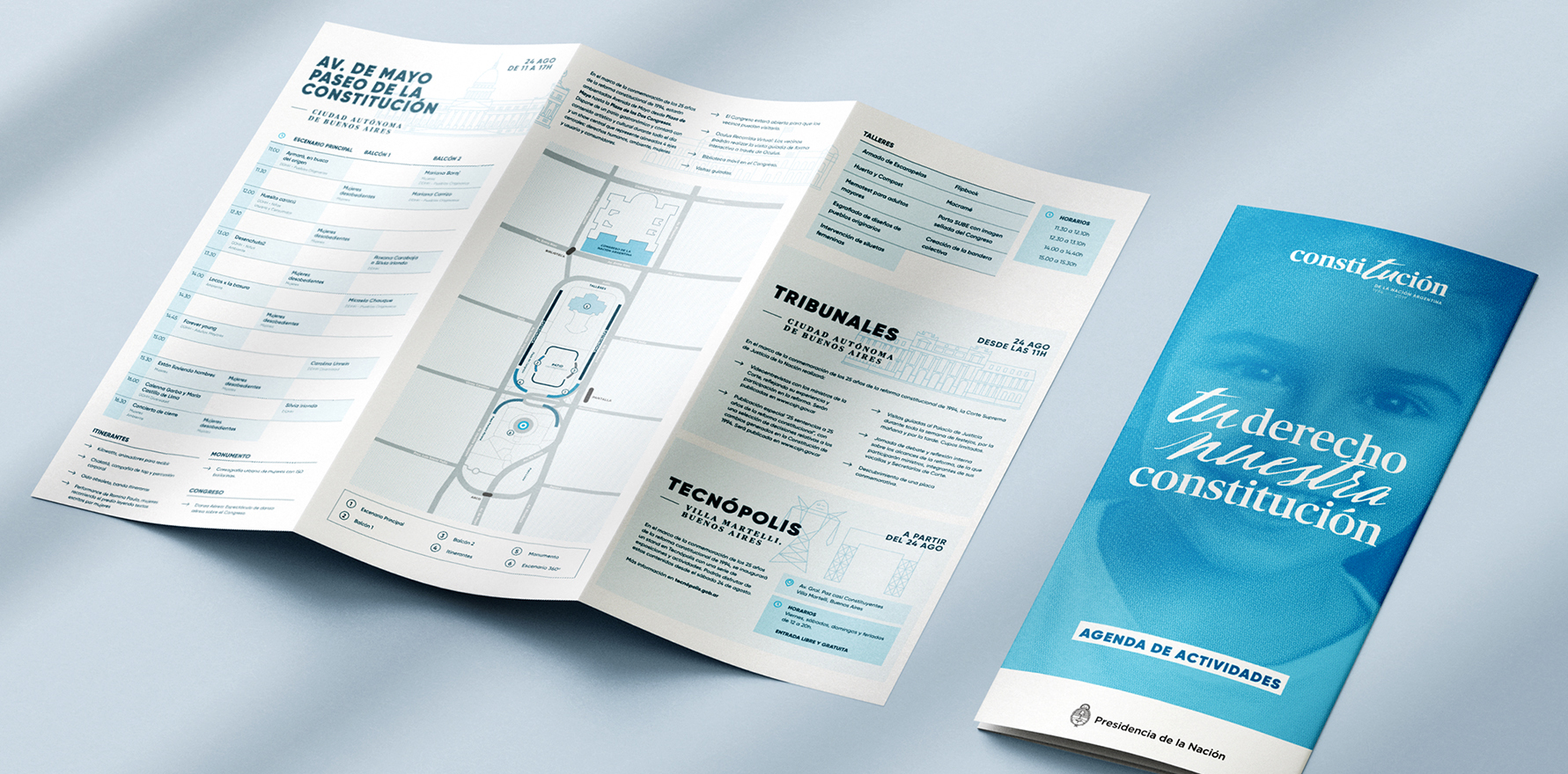 Se desarrolló una identificación visual enlazada a un conjunto de imágenes, basada principalmente en los ciudadanos, en su sentido de apropiación y en la representación y aplicación de la Constitución en cada uno de ellos. Paralelamente se creó la ambientación del evento principal, y una plataforma digital en donde se puede encontrar una versión simplificada de la Constitución Nacional, redactada con el fin de democratizar y promover el acceso a la información. Esta iniciativa propone una herramienta para la inclusión, que disponga al alcance de todas las personas la ley fundamental de nuestro país. Asimismo se generó un stand con actividades para promover el acercamiento de los jóvenes a la Constitución, videos explicativos y todos los materiales gráficos y digitales del evento.