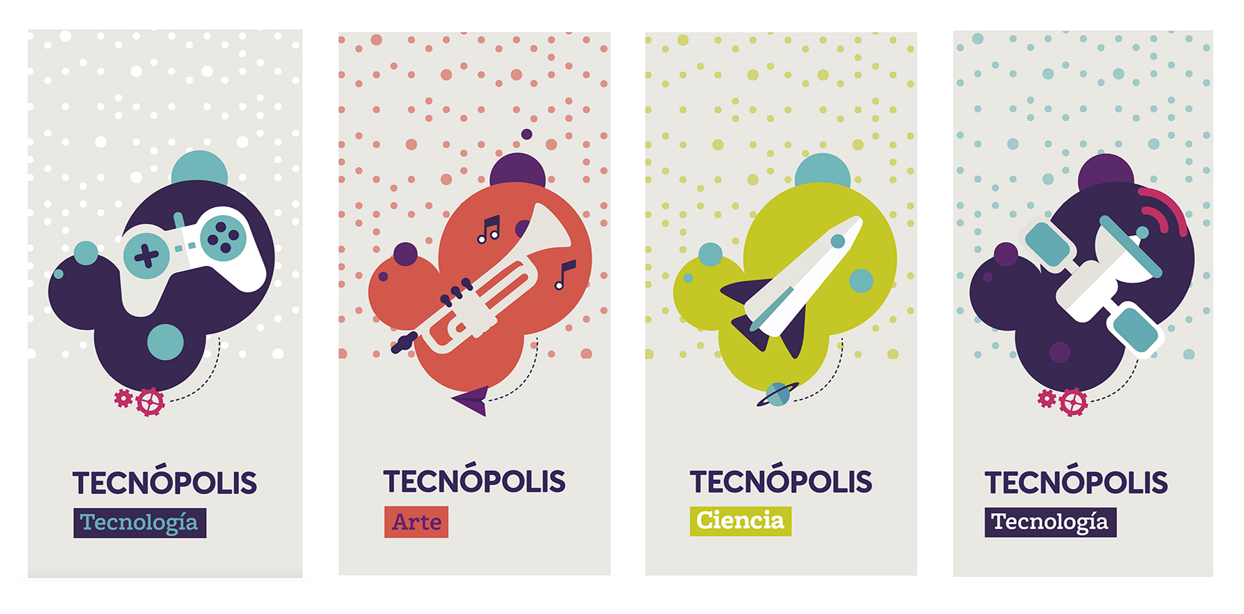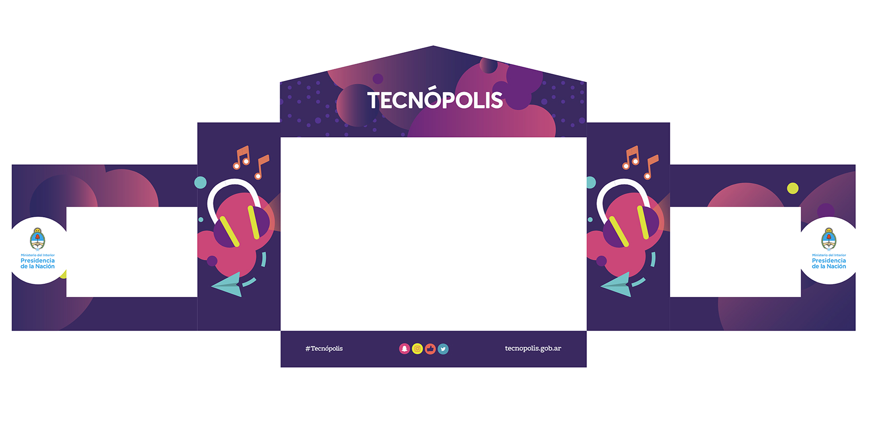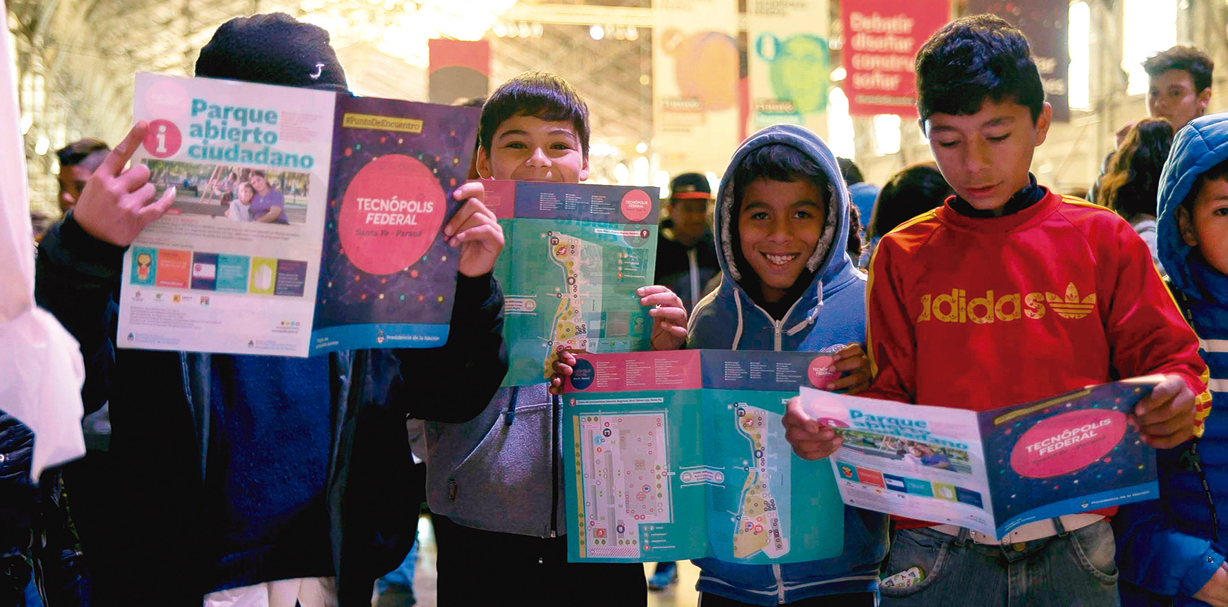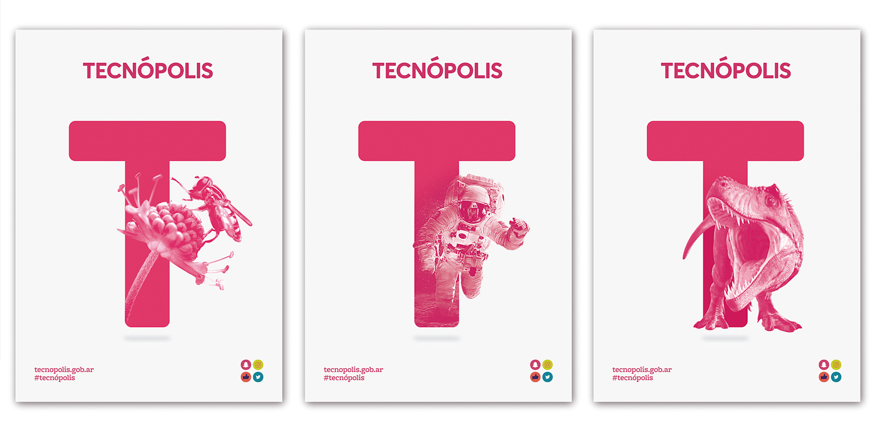 La comunicación se dividió en un nivel institucional/informativo y otro de edutainment con un tono discursivo sencillo, y se optimizó el uso de los soportes existentes. El objetivo fue lograr una identidad cálida, popular y amigable, donde la ciencia y la tecnología no aparezcan de manera rígida o lejana sino en un entorno accesible y lúdico. Por otra parte, el traslado de Tecnópolis a distintas provincias requiere su implementación en soportes muy disímiles, en plazos acotados y con proveedores de diversa cualificación. Por eso fue necesario desarrollar un sistema visual simple de usar, adaptable y fácilmente replicable en distintas escalas. En simultáneo creamos una submarca diferenciada de Tecnópolis como proveedor de contenidos científico-culturales para medios audiovisuales.