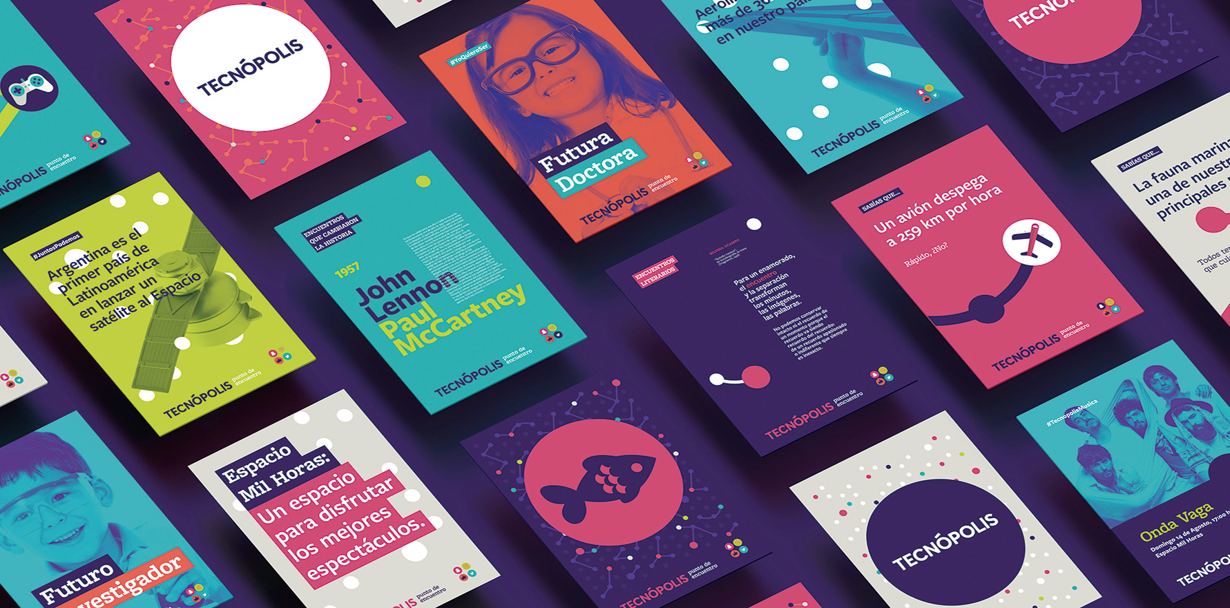 Tecnópolis es una enorme feria de ciencia y tecnología, visitada cada año por millones de personas. Concebida originalmente como una exhibición temporaria, se convirtió en una marca de alcance internacional reconocida y requerida. Se nos solicitó un refreshing de su identidad visual atendiendo a un perfil más blando y flexible, capaz de incorporar el arte y las nuevas expresiones culturales junto a la ciencia, tecnología e industria que ya albergaba. Asimismo se nos encomendó desarrollar la extensión de la marca para su versión itinerante, concebida como un contenido antes que un lugar.